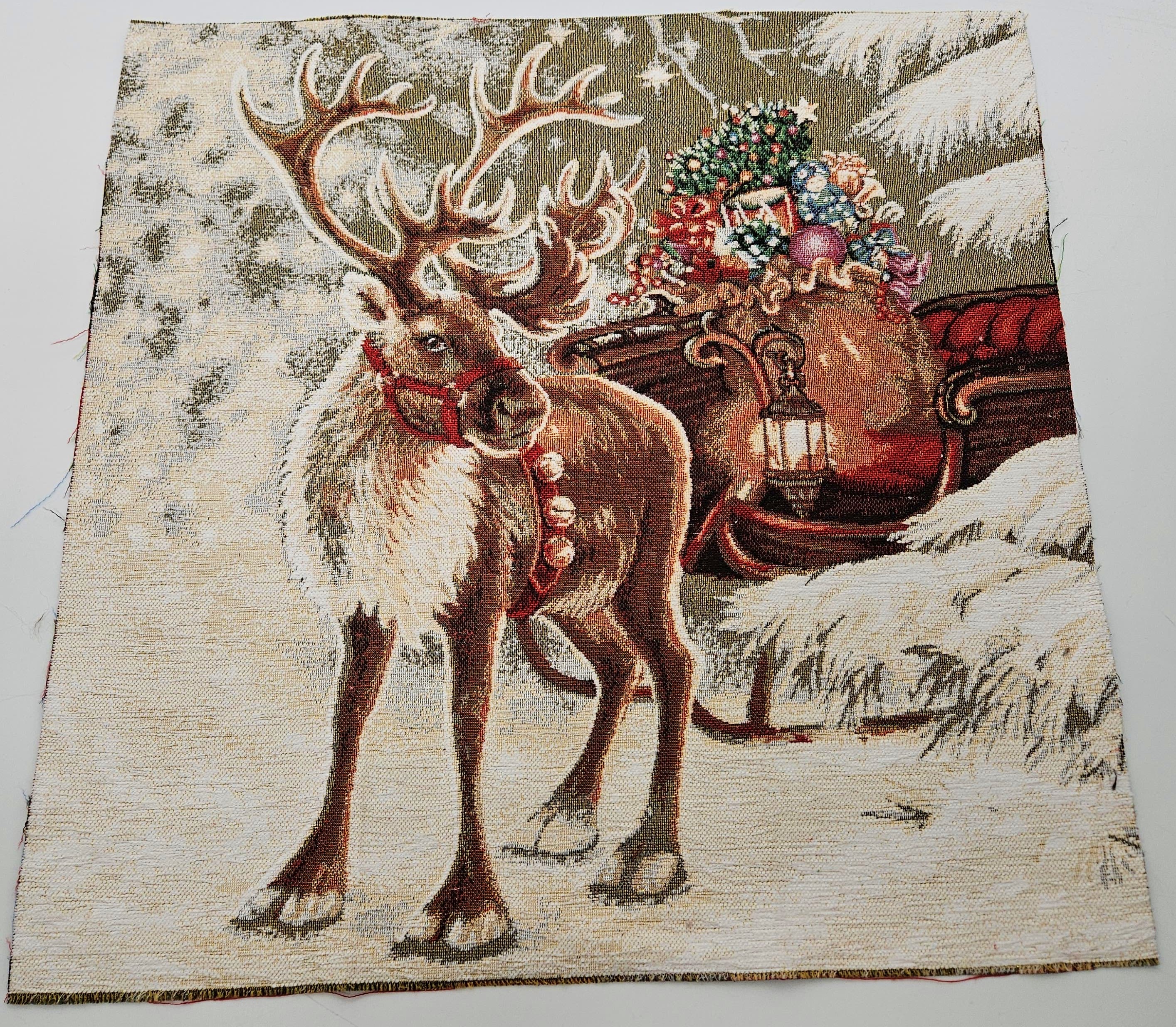 Rentier mit Schlitten mit edlem Goldlurex Garn - weicher chenille Gobeline 47x47cm