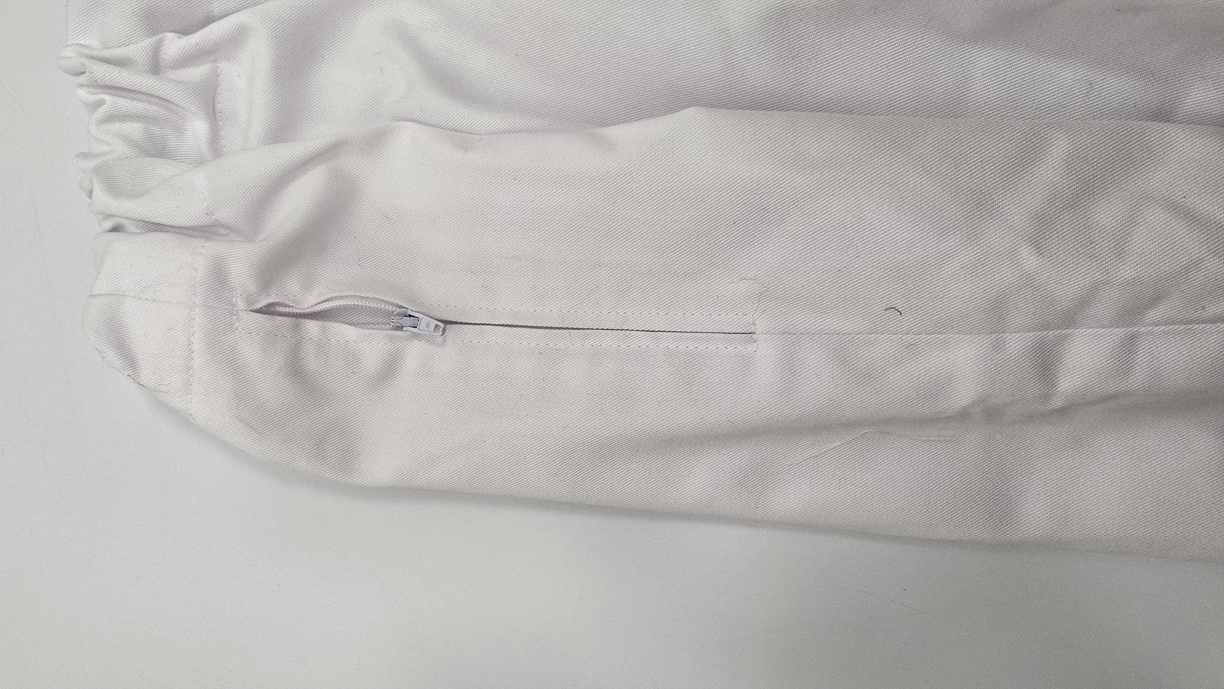 Unsere bequemen Hexenhosen sind in klassischem Weiß erhältlich und mit praktischen Taschen samt Reißverschluss rechts und links ausgestattet.