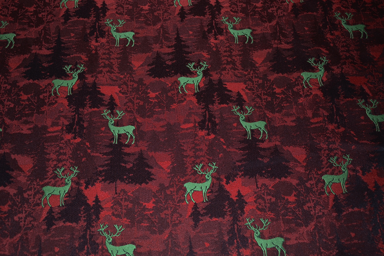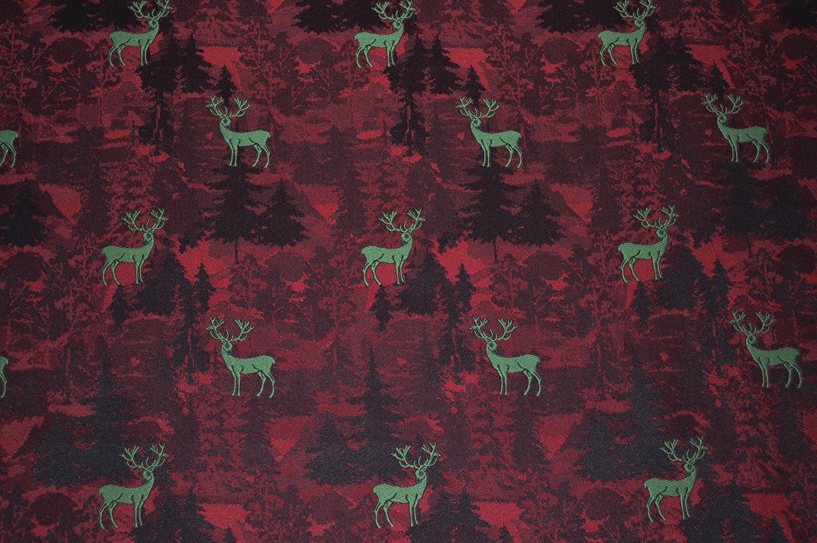 sehr edler Jacquardstoff mit Wald - Tannen - Hirschen - Schwarzwald - Black Forest - pinke Hirsche