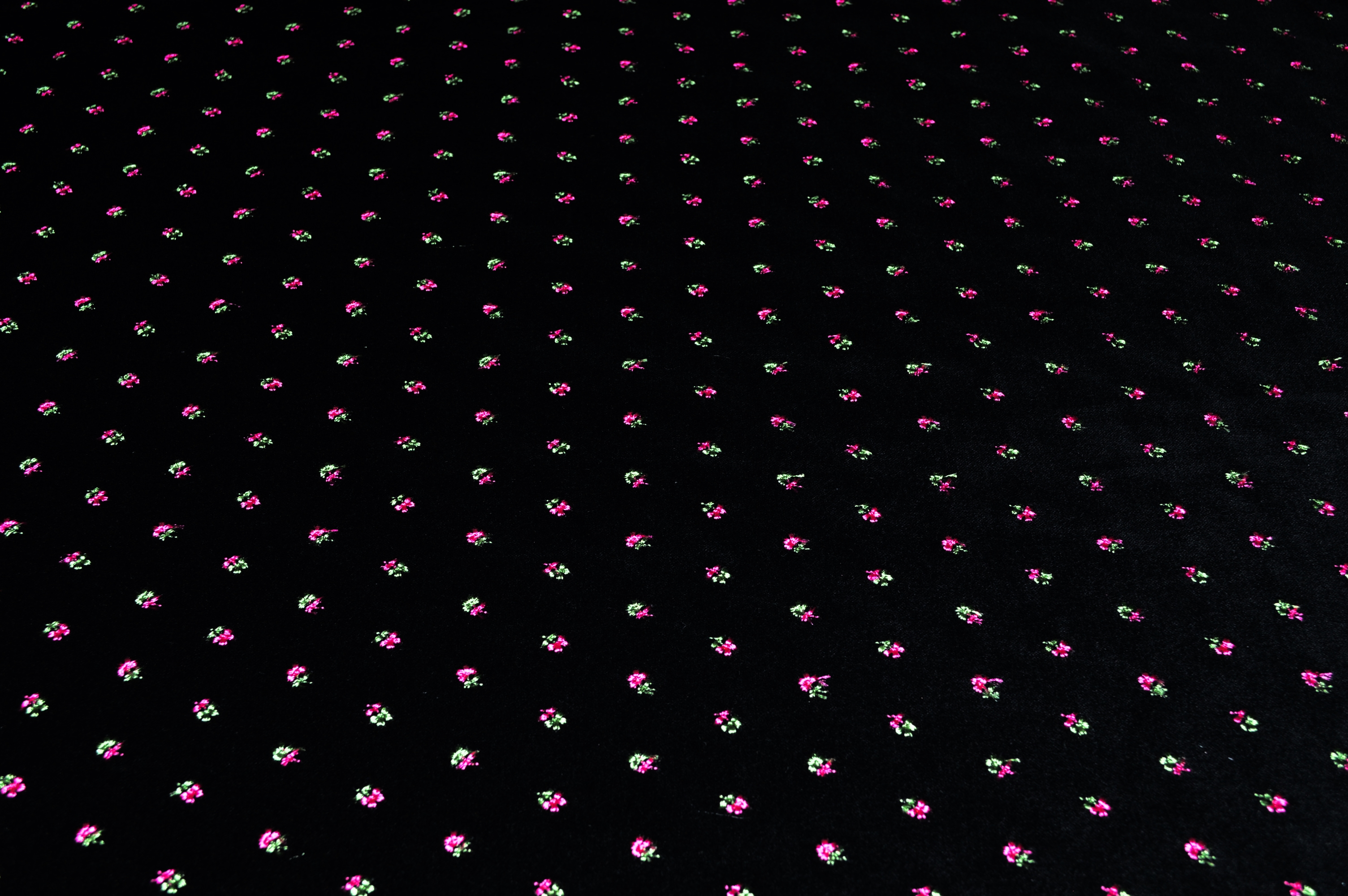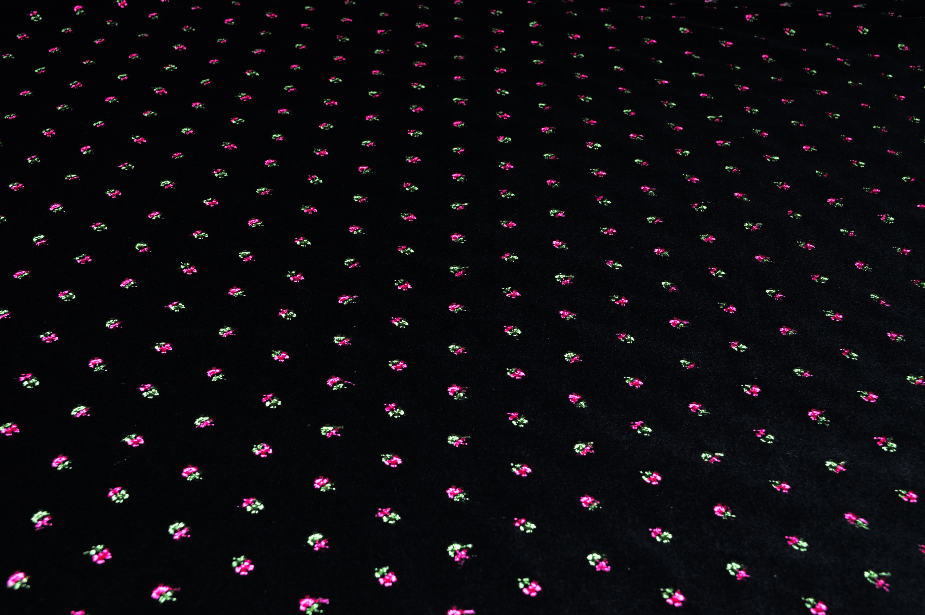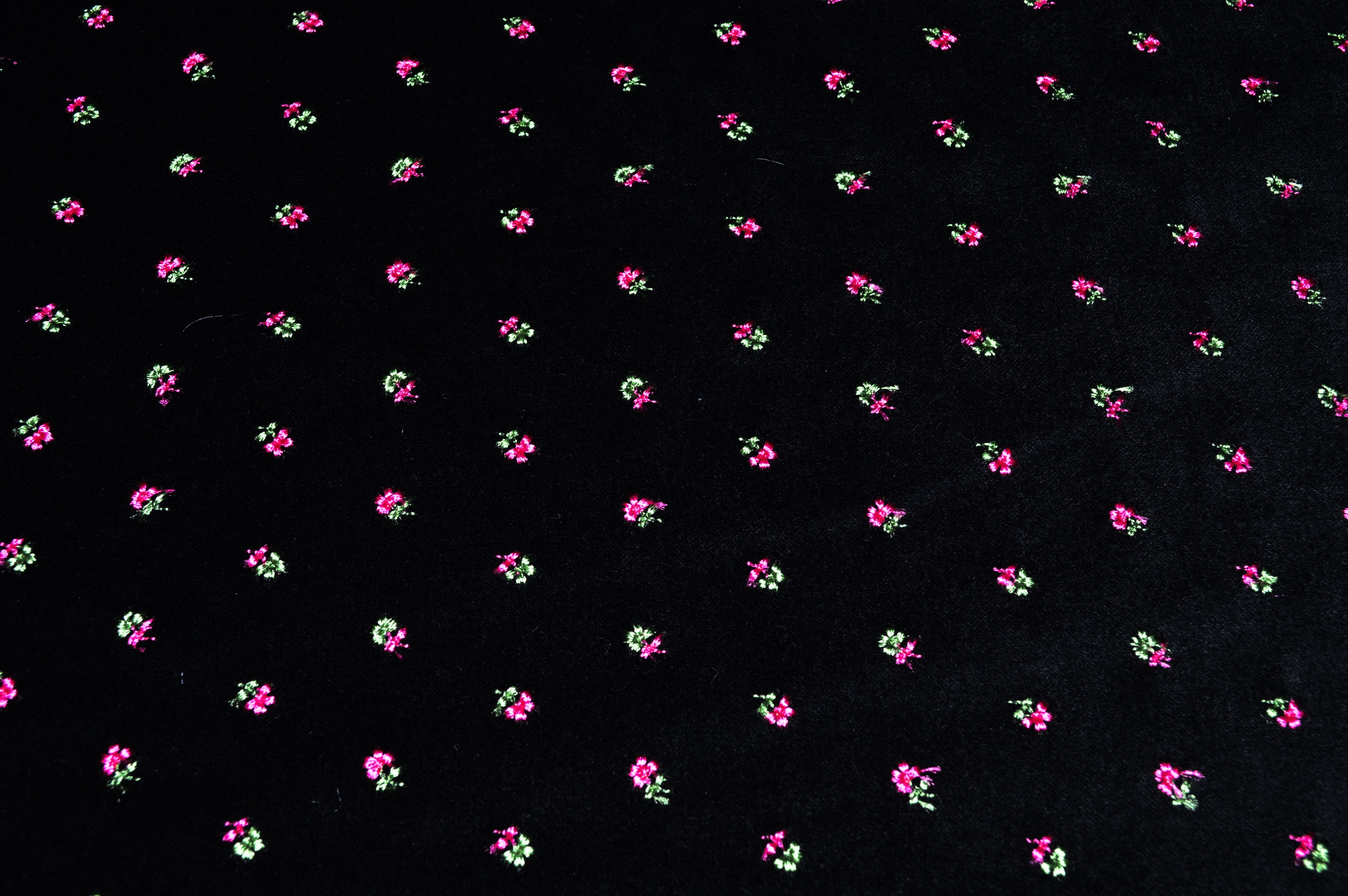 Bestickter Samt schwarz mit pinken Blümchen - Samt bestickt Trachtenstoff Trachtensamt bestickt