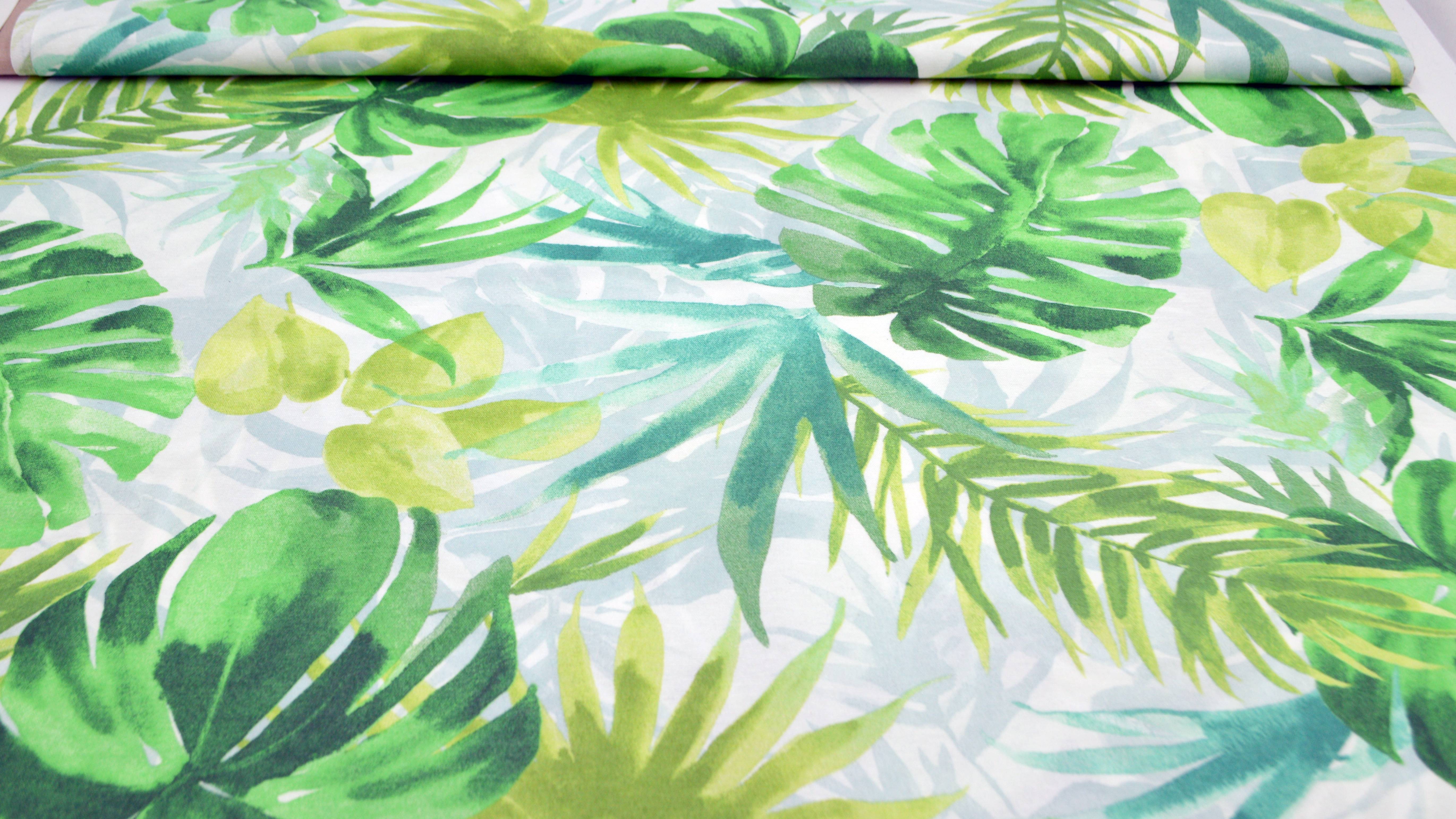 Hübscher dezent-milchiger Blätterurwald mit Fleckenschutz ausgerüstet! Ideal abwaschbarer Tischdeckenstoff, Bastelunterlage, Wickelmatte und noch vieles mehr - pflegeleicht und waschbar!