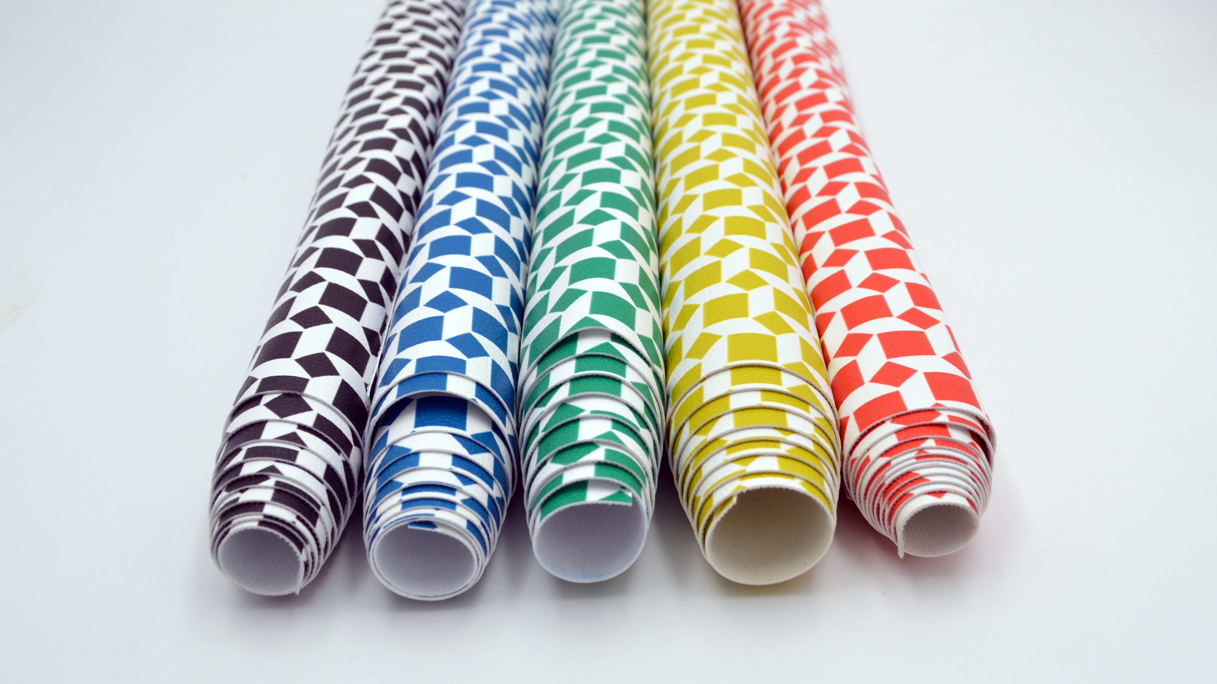 "Cancun" - wie die touristische Stadt in Mexico - heißt dieses kaschierte auf Retro getrimmte Kunstleder. Cancun gibt es in fünf verschiedenen Farben mit coolem geometrischen Muster, welches von weitem an die M.C.Escher Treppen erinnert: die Quadrate sind so angeordnet, dass sie sich zu dreidimensionalen Treppenlandschaften verbinden!