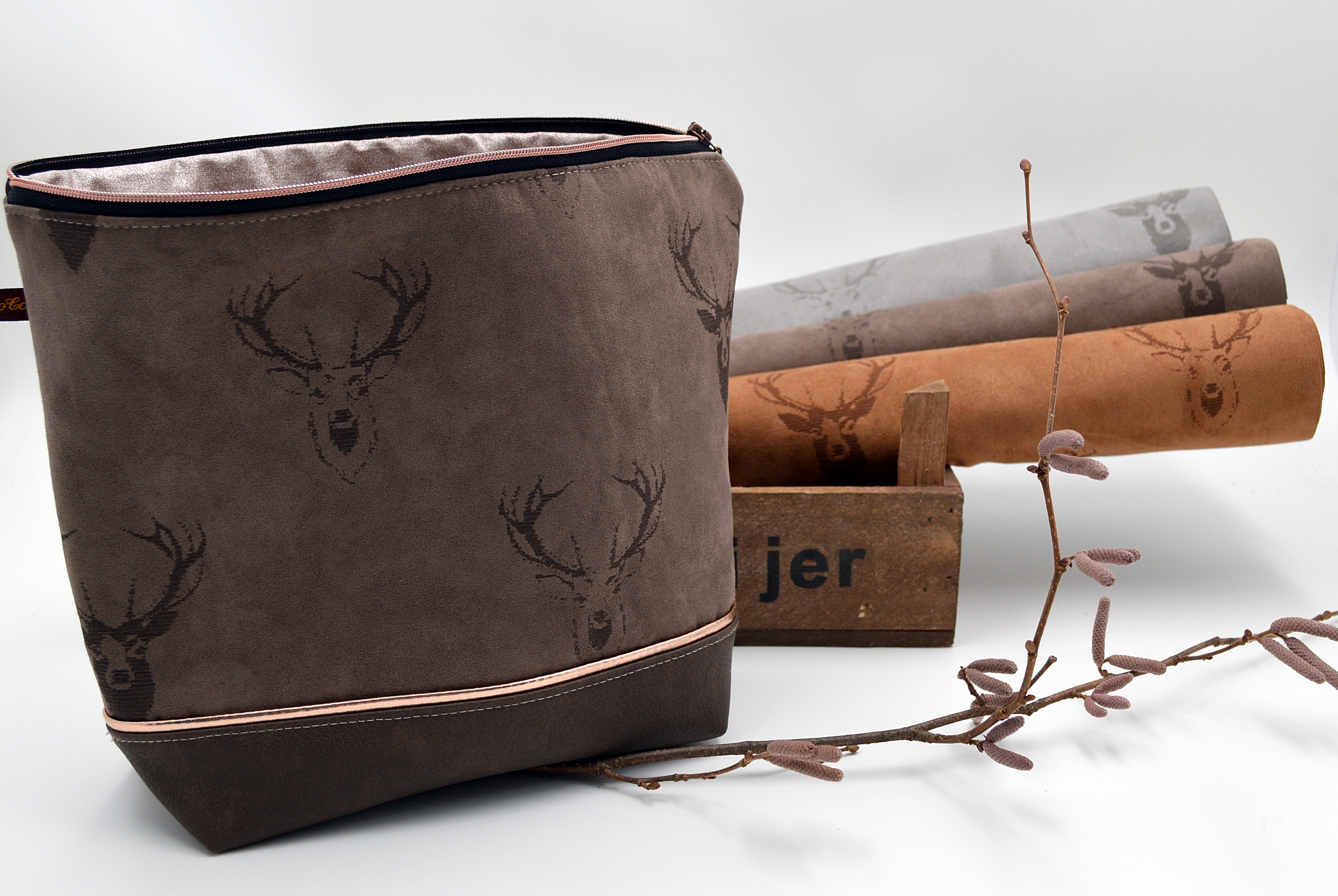 Der sympathische Hirsch fühlt sich kuschlig weich an (fast wie ein Samtstoff!) und lässt sich daher hervorragend sowohl als stylischer Möbelbezugsstoff als auch als Taschenkörperstoff verarbeiten. Er röhrt bei uns auf 2mm starkem Velour mit kaschierter Fleece Rückseite und ist in zwei Profilen in den Stoff gelasert. Der hübsche Hirsch ist außerdem von Natur aus äußerst reinlich (schmutzabweisend!) und nikotinresistent (Zigarettentest nach BS 5852 bestanden)