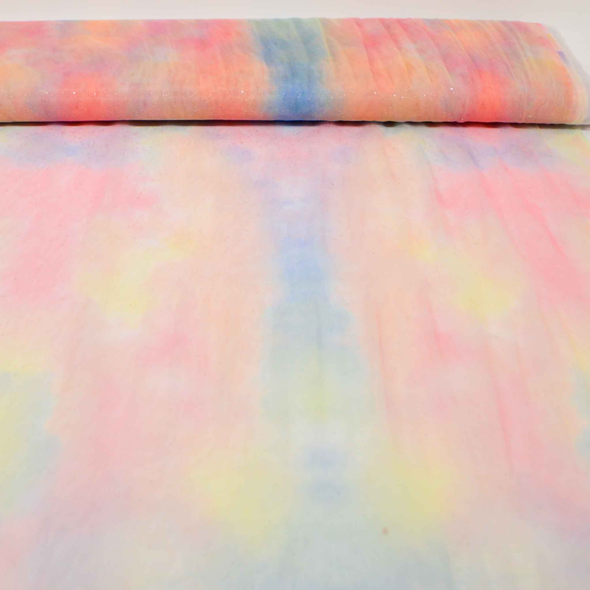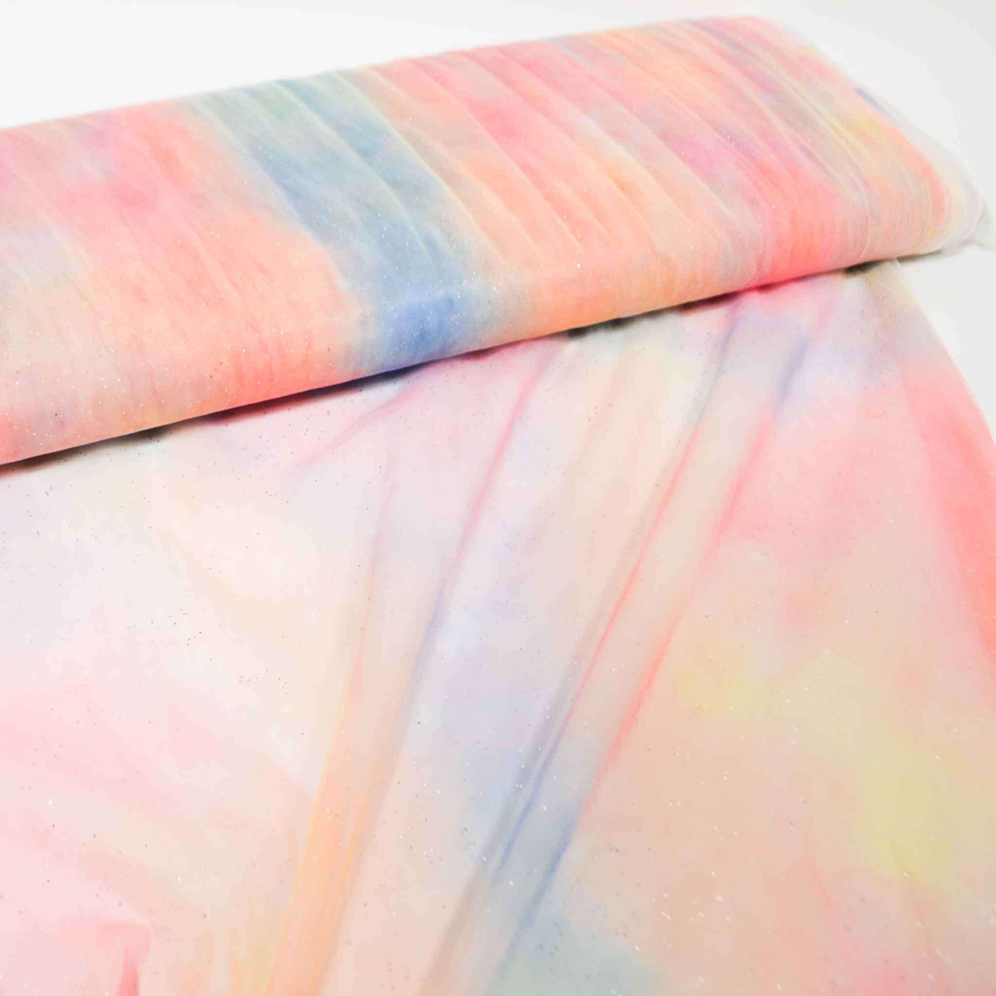 Tüll mit Glitzer Rainbow Glitzer Tüll Rosa Gelb